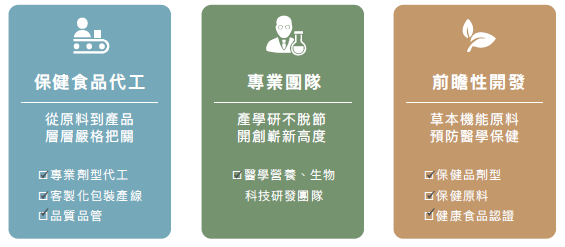 保健品事業部-每年12間新客戶開發合作:因應台灣地區整體保健食品(含一般機能性食品及健字號健康食品)市場每年約5~8%成長,除現行已合作之客戶外,訂定每一年度開發12間新客戶合作之目標,先期以新客戶開發合作之數量,帶新客戶數數量增加後,藉由擔當業務與客戶間的客情互動,並依據客戶屬性及其通路需求評估後續成為重要客戶潛在實力。